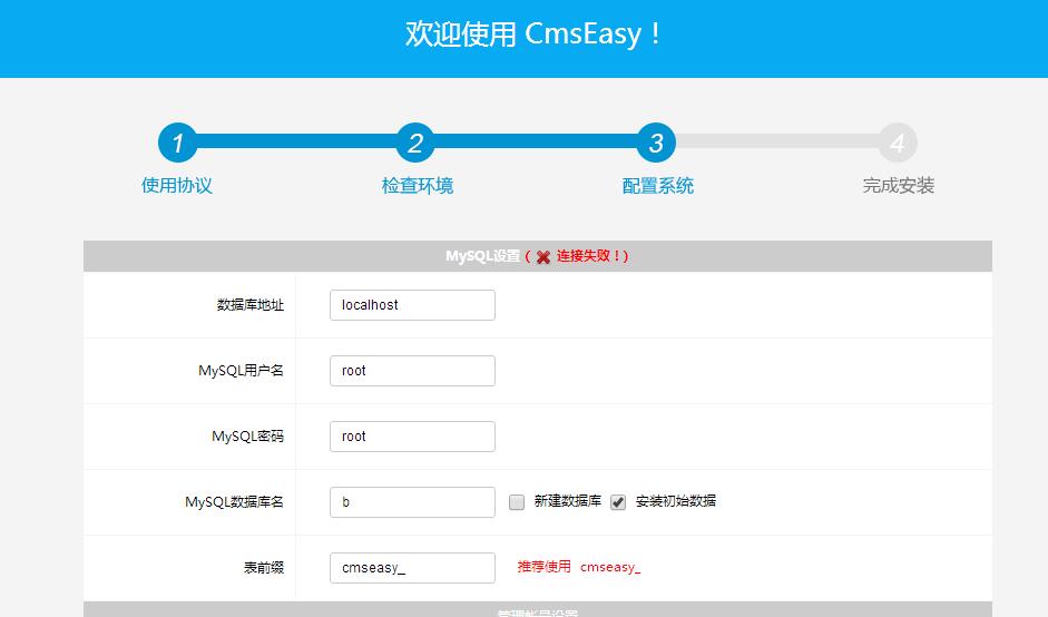 當(dāng)安裝網(wǎng)站,進(jìn)行到數(shù)據(jù)庫(kù)信息填寫(xiě)時(shí),如數(shù)據(jù)庫(kù)信息填寫(xiě)錯(cuò)誤,會(huì)提示如下: