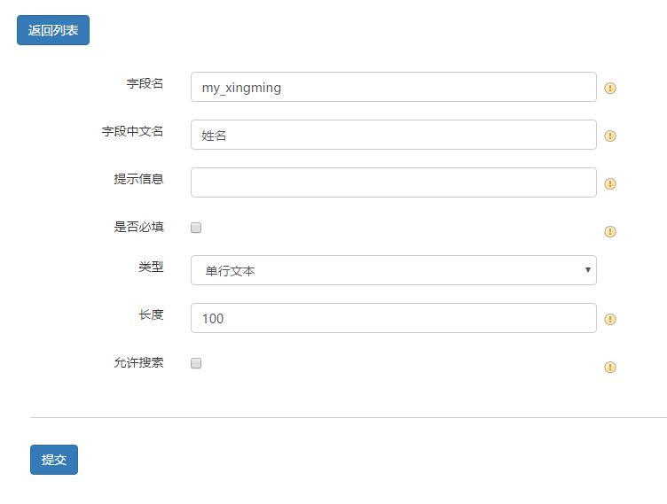 提交后,生成一個新表單,但表單內(nèi)容為空,如何向表單添加字段可參考如圖: