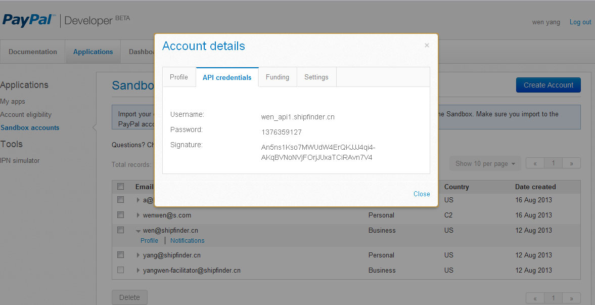 如何獲得簽名和密碼信息,首先登陸貝寶官網(wǎng)后,你點擊中間的導航欄“用戶信息”,然后你點擊 [ API訪問 ] ,然后點擊 [ 申請API憑證 ] ,然后 [ 生成API簽名 ] ,如圖: