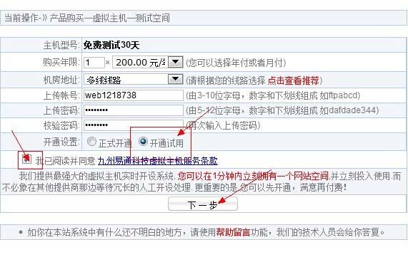 選擇“產(chǎn)品購買”欄目,在右側(cè)選擇“虛擬主機(jī)”進(jìn)入,挑選心儀的主機(jī)型號,點(diǎn)擊”立即購買”,進(jìn)入如下界面: