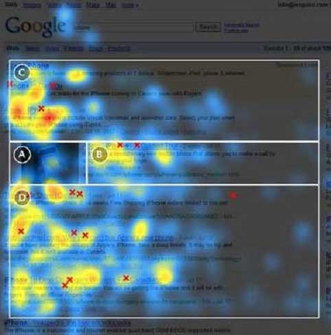 下面這張圖是一張測(cè)試頁面的熱點(diǎn)圖,可以清晰的感受到F熱點(diǎn)理論的存在。